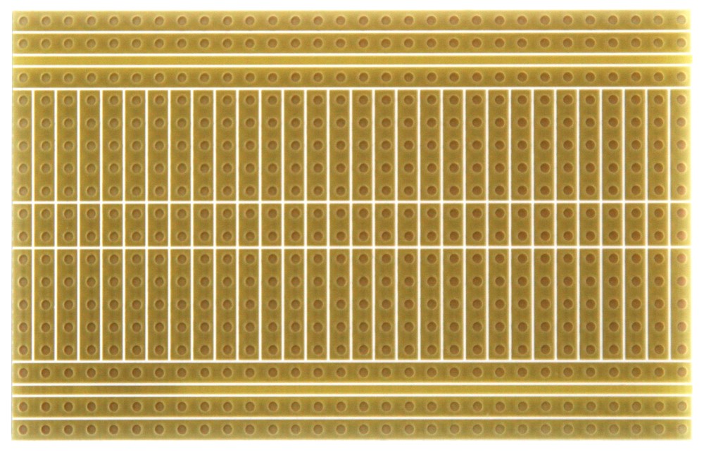 - 540 holes, 0.042" holes are drilled on 0.1" (2.54mm) centers.