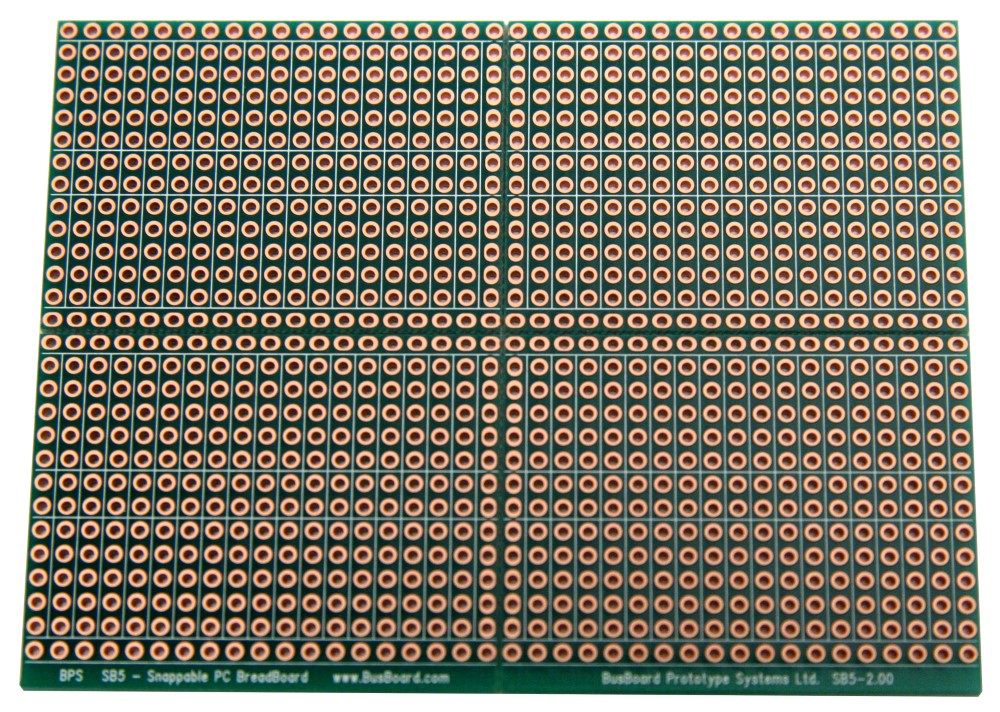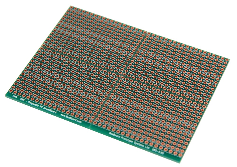 BPS prototyping boards use high-quality FR4 glass epoxy PCBs for long life. An anti-tarnish coating protects the copper for a long shelf-life and provides easy soldering. BPS boards are lead-free and RoHS compatible.