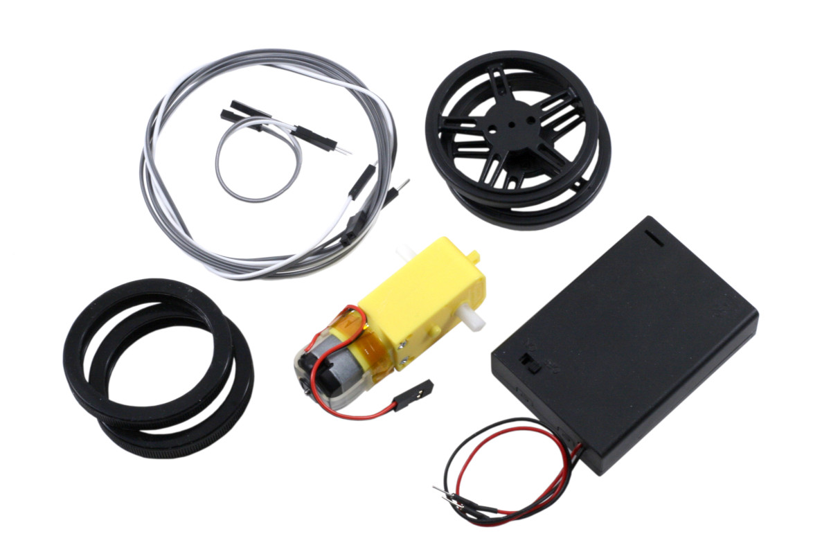 DC Motor with attached power wires, two grippy wheels, ZipWires™ and 3AA Battery Box