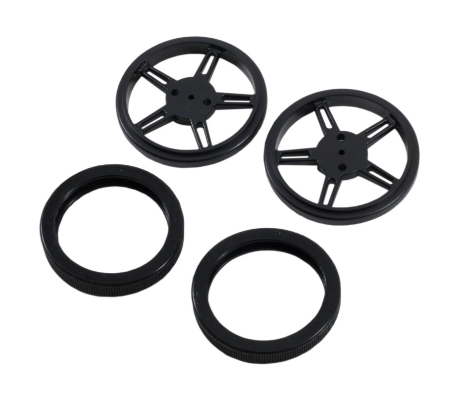 - Two 60mm (2.35") plastic wheels with grippy rubber treads provided.